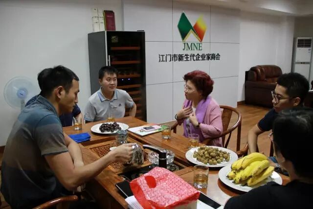 交流中,江门市新生代企业家商会冯永文会长对省青企联的到访表示真诚的欢迎,他希望通过本次的座谈和交流尽快落实江门新生代企业家商会加入省青企联成为团体会员单位,努力实现与省青企联的友好合作,互惠共赢。江门新商会常务副会长兼秘书长潘惠琼介绍了江门新生代商会的创立一周年以来的办会情况以及未来的发展思路,希望能够借助我们省青企联的大平台实现真正意义上的走出去。