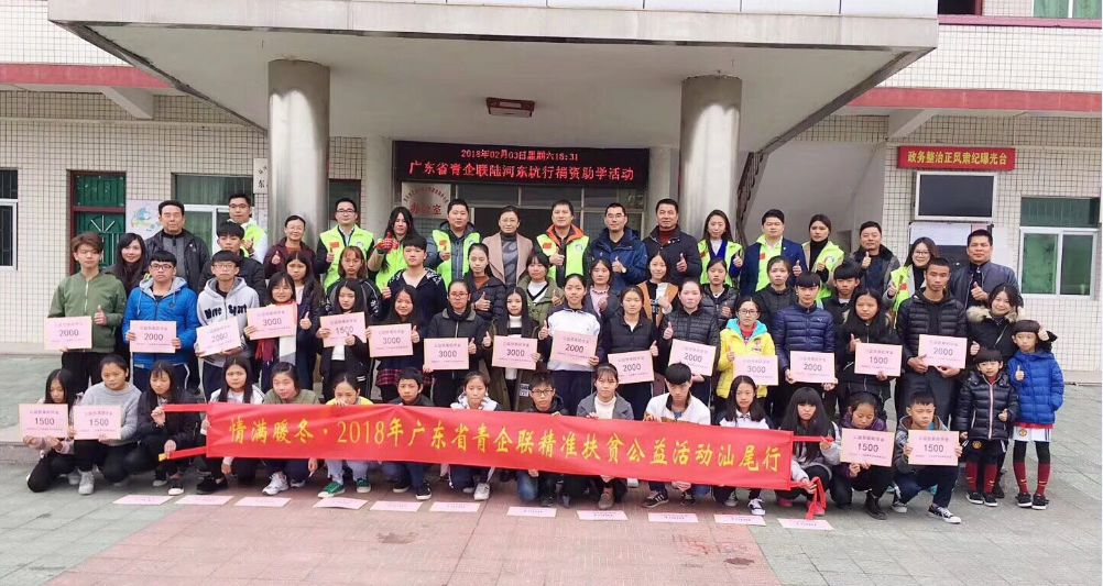 情满暖冬——2018广东省青企联精准扶贫公益活动·汕尾行圆满结束,感谢全体省青企联家人的爱心捐款用于助学金及年货礼包,感谢陈宏海常务副会长给每位贫困学子派送的新年红包,感谢张敏明副会长捐赠文具一批、宋明瑞会员捐赠食用油一批、李嘉声会员捐赠腊味一批,感谢韩楚怡会员提供的年货礼包一批,感谢各位领导和家人的现场参与和付出!感恩省青企,我们在一起!