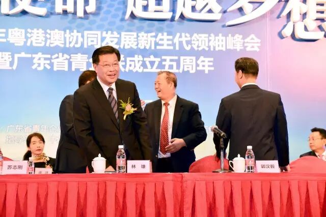 广东省委常委、省委统战部部长,省政协党组副书记、副主席林雄,省委统战部副部长,省工商联党组书记、常务副主席郭汉毅出席活动并讲话。全国工商联副主席、广东长隆集团董事长苏志刚,广东省工商联党组成员、副主席张宏斌,广东省工商联党组成员、秘书长李汉峰,团省委、省民政厅有关部门领导出席峰会。特邀国务院参事室特约研究员、原国家税务总局总经济师姚景源,广东省工商联副主席、香江集团总裁翟美卿,广东省工商联副主席、深圳海王集团董事长张思民,广东省工商联副主席、广州海印集团董事长邵建明,广州市工商联副主席、广州立白企业集团有限公司董事长陈凯旋出席。各地级市工商联主要领导、北京市青年企业家商会,上海市工商联青年创业者联谊会,浙江省新生代企业家联谊会,江苏省青年企业家联合会,重庆市工商联青年委员会,接力中国青年精英协会,家族传承中心以及来自全省各地的青年企业家代表、港澳工商社团青年企业家约700人应邀参会。