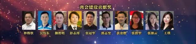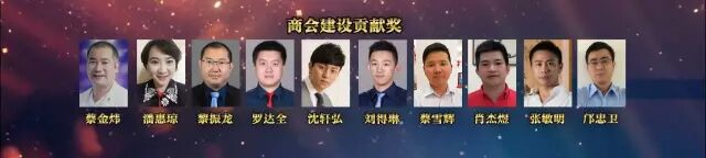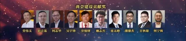 ▲广东省工商联党组成员、副主席张宏斌,广东省工商联党组成员、秘书长李 汉峰,广东省青年企业家联合会会长叶永楷为商会建设贡献奖颁奖
