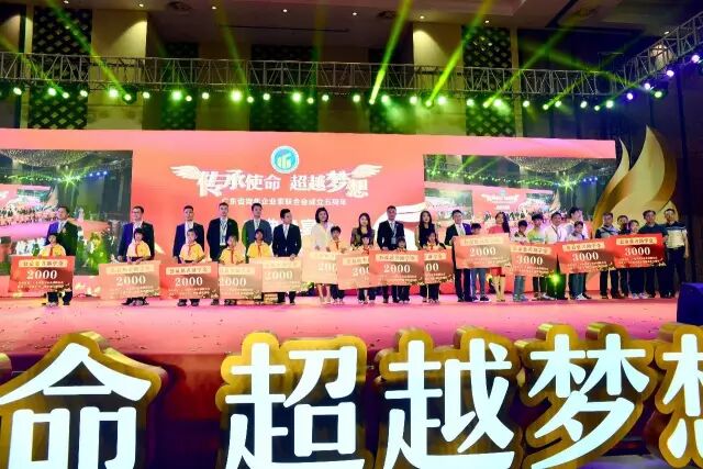 庆典晚宴上灯火辉煌、歌舞精彩、好戏连连,五周年生日仪式呈现出一片欢乐祥和的喜庆氛围。尤为感动的是广东省青企联一直秉承的精准扶贫爱心公益活动,在现场向韶关新丰禾溪村、梅州丰顺八乡山14名贫困学子捐赠全年助学金的慈善之举更是将庆典推向了高潮。晚会在充满激情的《光辉岁月》和广东省青企联会歌《超越自我》中圆满落下帷幕。