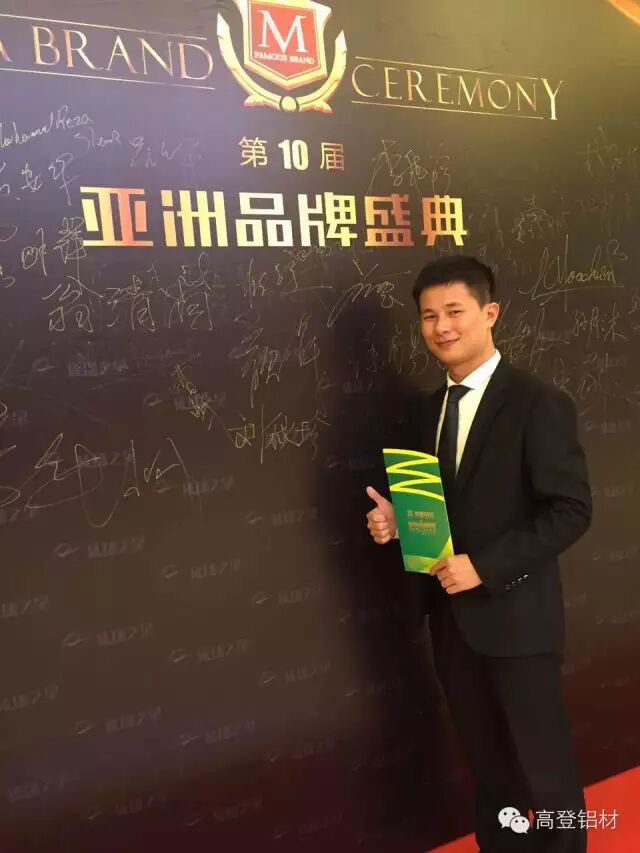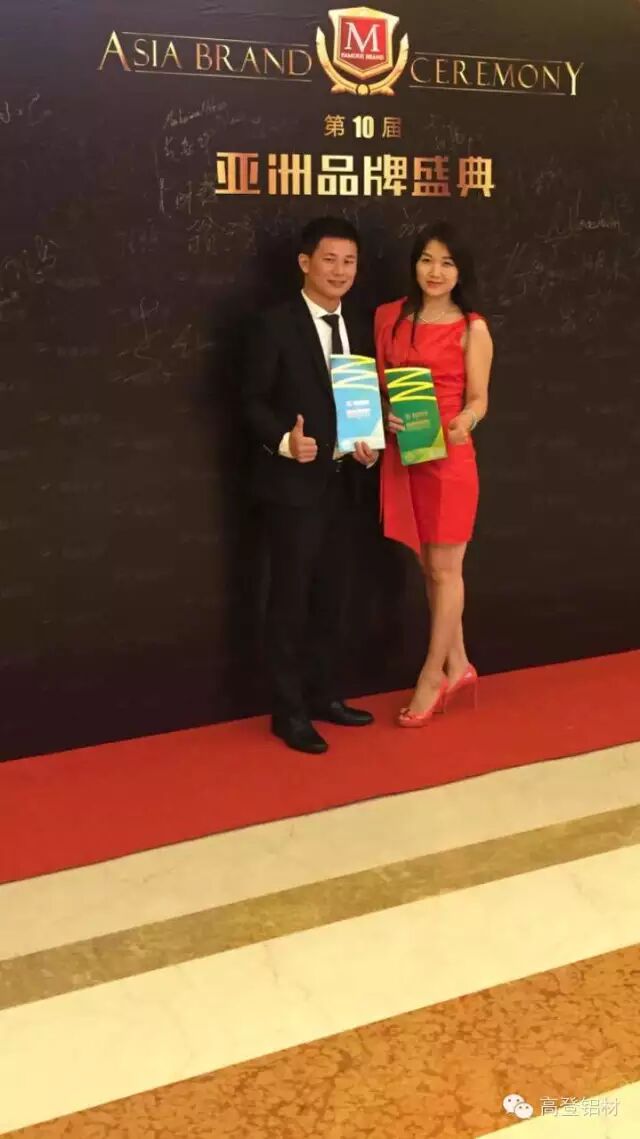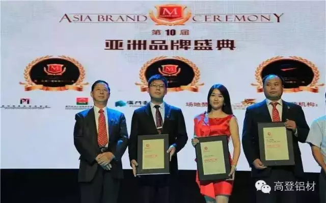 9月8日至10日,2015年亚洲品牌年度盛宴——第10届亚***************************************************************。我会副会长李婧企业高登铝业集团作为国内铝型材行业十大品牌、行业领先知名大型综合铝型材集团,受邀出席盛典,同时受邀出席“亚洲品牌盛典”,作为一家拥有三十年的家族企业高登在品牌建设上取得了突出成绩,广东高登铝业集团荣获2015年“亚洲品牌500强企业”殊荣。