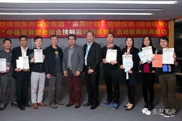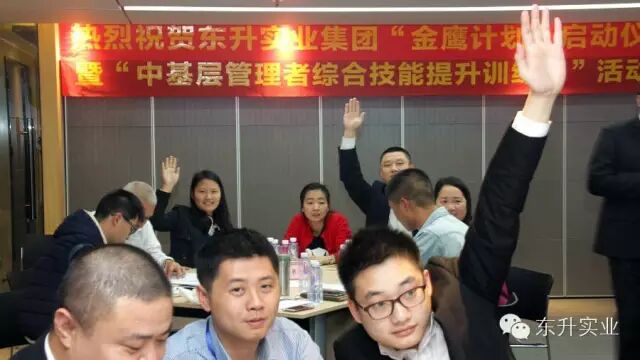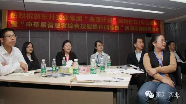 为达到集团人才梯队建设的目的,使中基层管理者真正成为企业的砥柱中流,东升实业集团从2015年下半年开始陆续对集团总部及各下属单位中基层管理者进行全面提升培训。于3月18日,“金鹰计划”启动仪式暨“中基层管理者综合技能提升训练营”在集团总部多功能会议室隆重举办。出席活动现场的领导分别是集团董事长赖松谷先生、总裁赖志光先生、行政人力资源管理中心总监林泉先生以及本次训练营的主讲老师曾文先生,同时,来自总部及各下属单位的中基层管理者参加了此次活动。