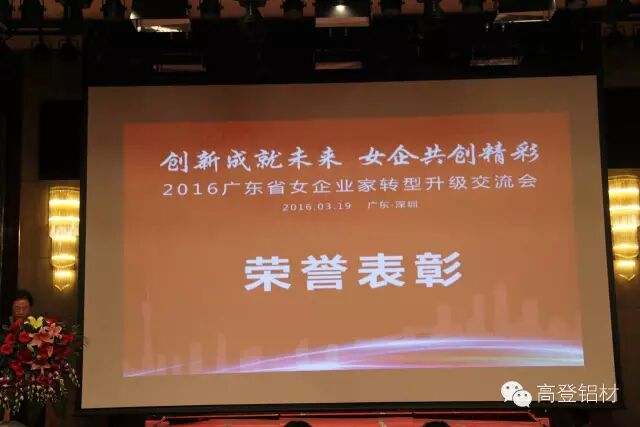 2016年3月19日,“创新成就未来 女企共创精彩”2016广东省女企业家转型升级交流会在深圳举行,会议中为2015年度广东省三八红旗手、三八红旗集体、优秀女企业家等颁奖。