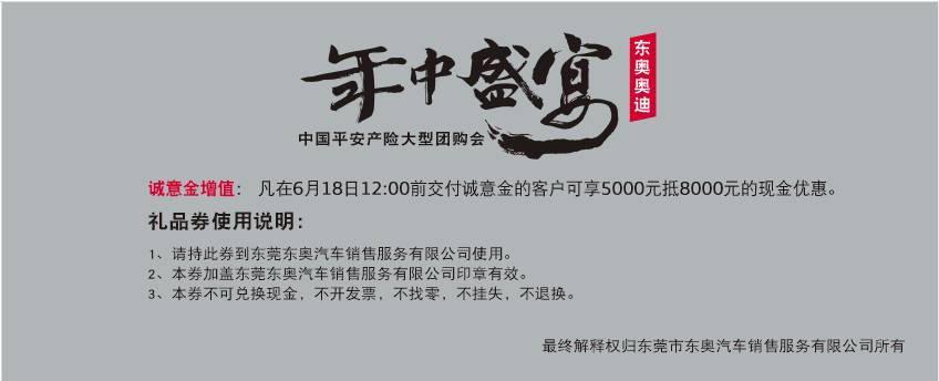 诚意金增值: 诚意金增值: 凡在6月18日12:00前交付诚意金的客户可享1000元抵2000元,5000元抵8000元的现金优惠