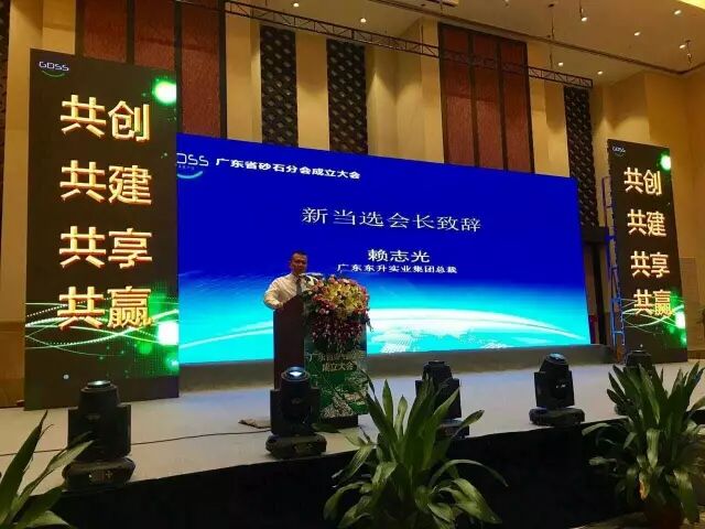 2017年8月15日,广东建筑材料行业协会砂石分会成立大会在广州长隆酒店隆重召开,大会选举产生了首届理事会成员,广东省青企联常务副会长、广东东升实业集团有限公司总裁赖志光先生当选首任创会会长。
