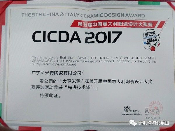 萨米特陶瓷“大卫米黄”荣获先进技术奖