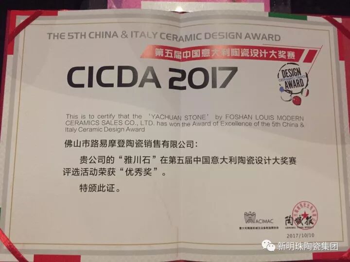 路易摩登陶瓷“雅川石”荣获优秀奖